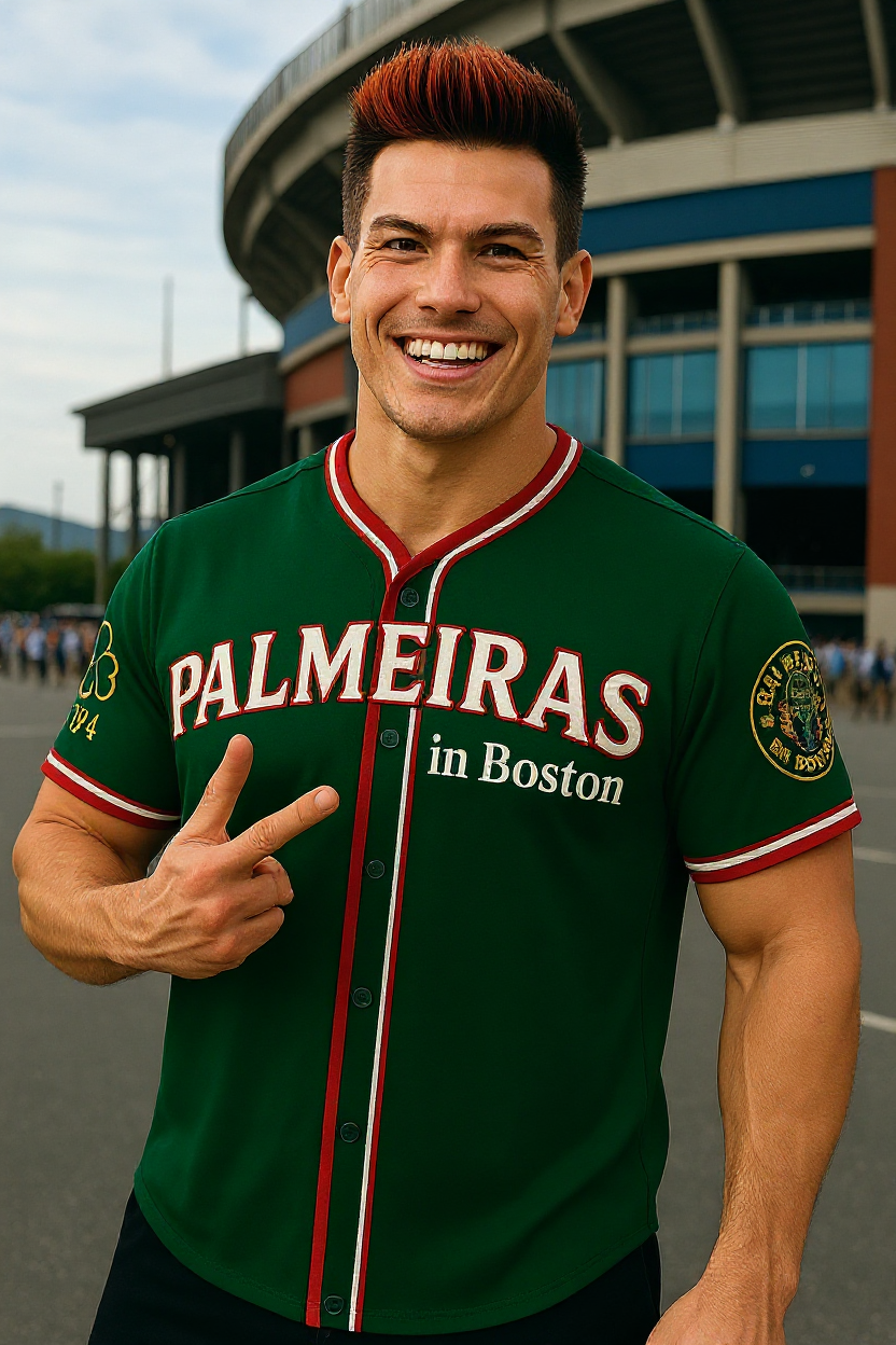 Inspirada na paixão dos torcedores do Palmeiras em Boston, essa camisa estilo beisebol traz o verde clássico com detalhes em vermelho e branco. O brasão especial “Palmeiras in Boston” na manga e o trevo 1914 celebram a história do clube. Produção limitada em pré-venda. ⚠️ Aviso: Este produto é uma PRÉ-VENDA. O prazo de entrega é de 20 a 30 dias após a compra.